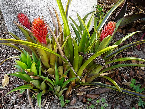 Quesnelia is a genus of plants in the family Bromeliaceae, subfamily Bromelioideae. The genus is named after French businessman and patron of botany Edouard Prosper Quesnel, of Le Havre (1781-1850). Endemic to eastern Brazil, this genus contains 22 known species. This genus has two recognized subgenera: the type subgenus and Billbergiopsis Mez. A leaf extract from this species is used in Nigerian traditional medicine for treatment of liver disease, and a few scientific studies have evaluated compounds in this plant for potential antibacterial properties and protective benefits for the liver.